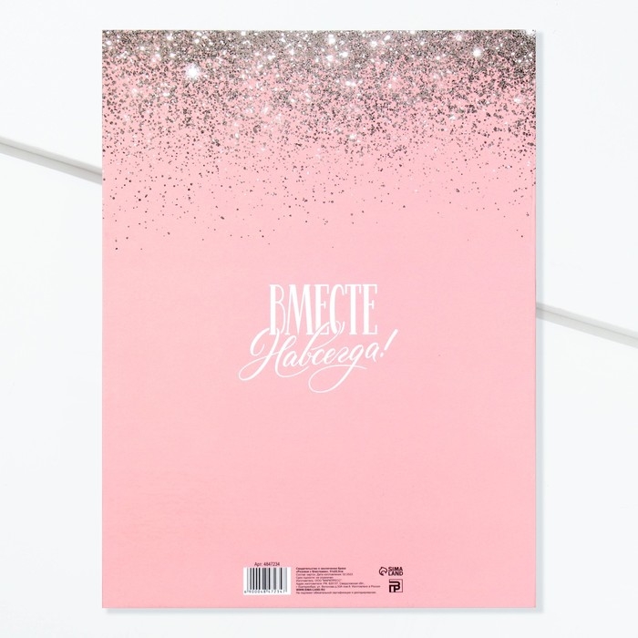 Свидетельство о заключении брака "Розовое с блестками" тиснение, 23,5 х 31,3 см.