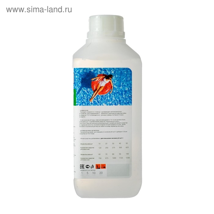 При ручной дозации: для повышения значения рН на 0,1 добавьте 125 мл средства на 10 м3 воды.