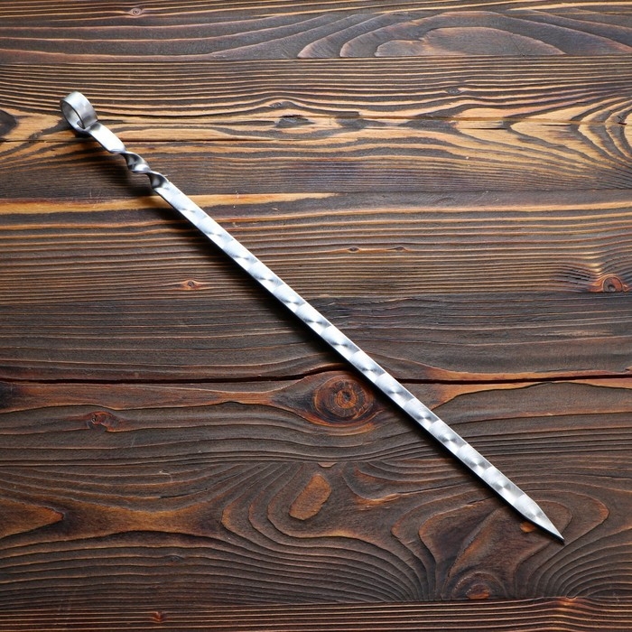 Шампур с деревянной ручкой, рабочая длина - 50 см, ширина - 20 мм, толщина - 2,5 мм с узором