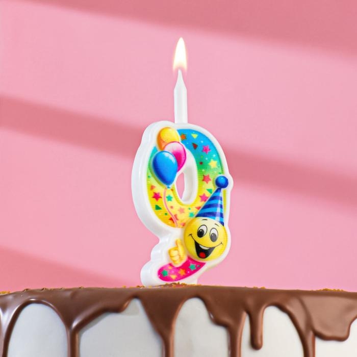 Свеча для торта "Смайлик с шарами", 9,9 см, цифра "9"