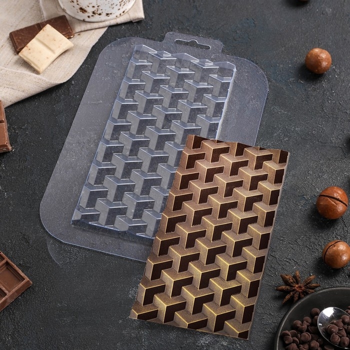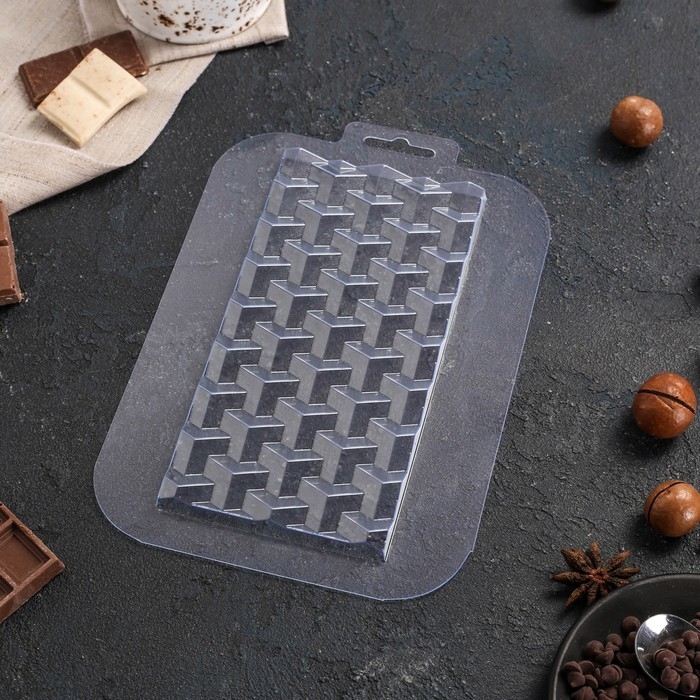 Форма для шоколада и конфет пластиковая «Плитка Кубики Экстра», цвет прозрачный