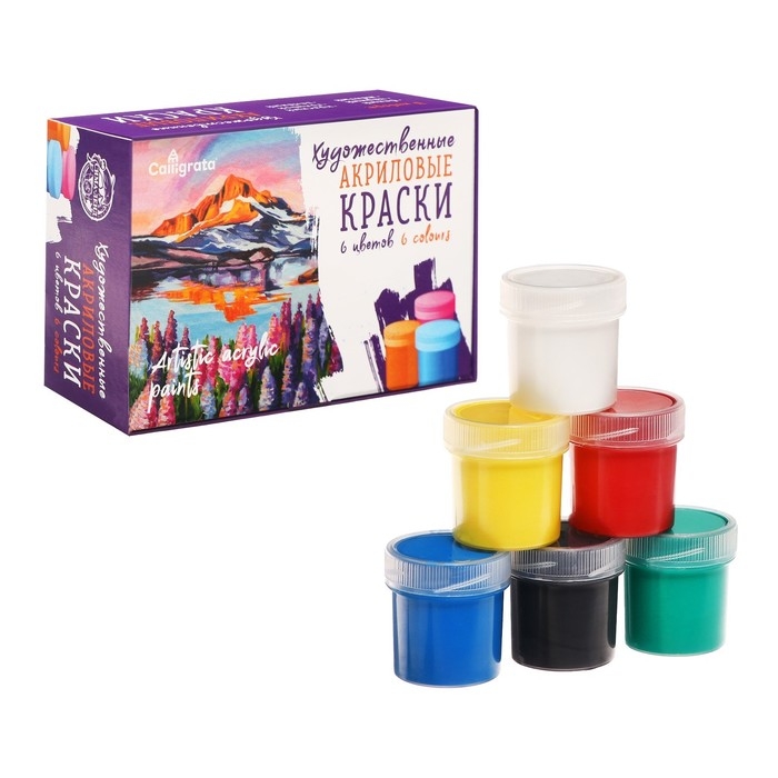 Краска акриловая, набор 6 цветов х 20 мл, Calligrata, художественная, морозостойкая, в картонной коробке