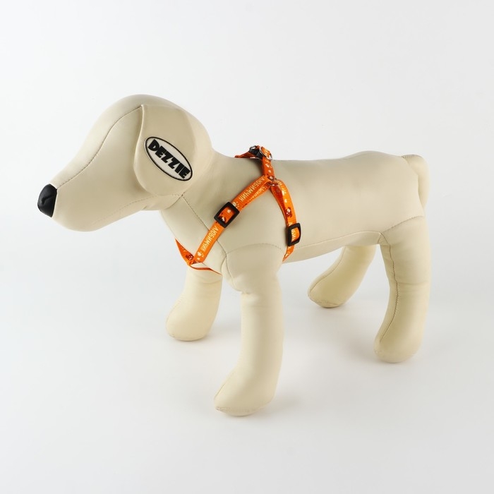 В стильный прогулочный комплект для собак входит лёгкая шлейка, прочный поводок и крепкий карабин. Ремни шлейки не давят на грудь и шею, равномерно распределяют нагрузку. Подходит для животных до 15 кг. Текстильная шлейка регулируется. Поводок крепится к металлическому кольцу карабином.