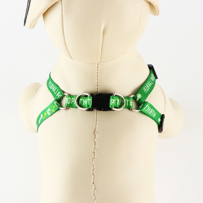 В стильный прогулочный комплект для собак входит лёгкая шлейка, прочный поводок и крепкий карабин. Ремни шлейки не давят на грудь и шею, равномерно распределяют нагрузку. Подходит для животных до 15 кг. Текстильная шлейка регулируется. Поводок крепится к металлическому кольцу карабином.
