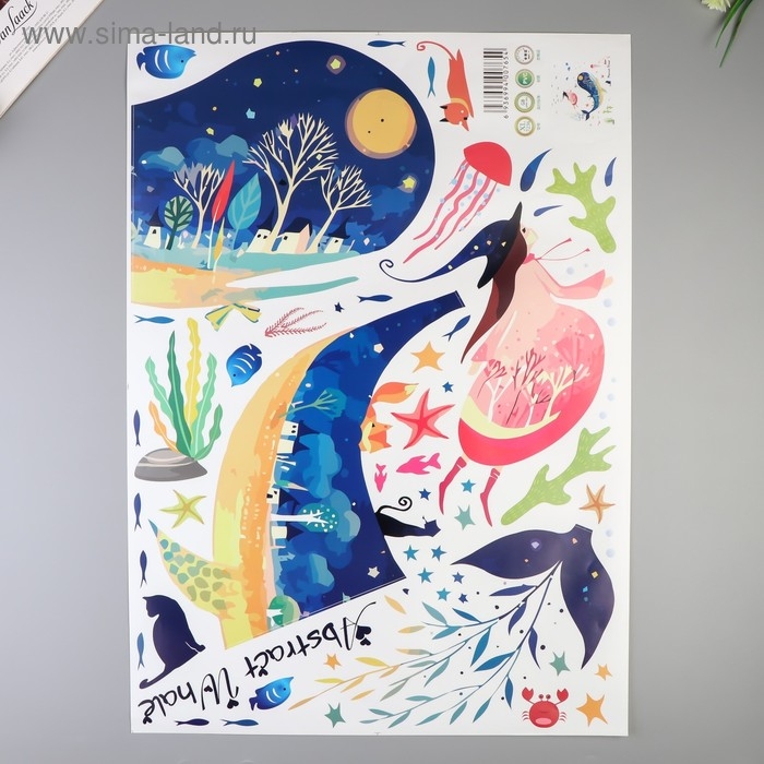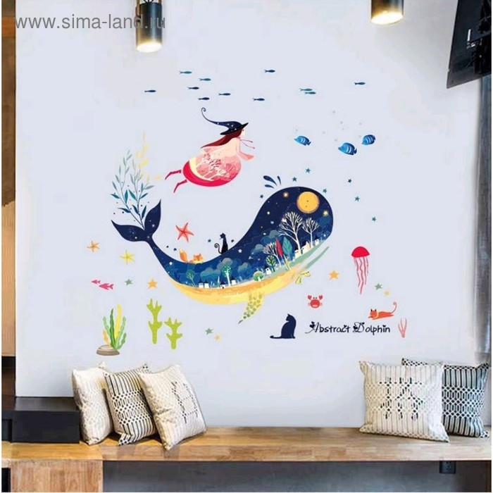 Наклейка пластик интерьерная "Кит и абстрация" 50х70 см