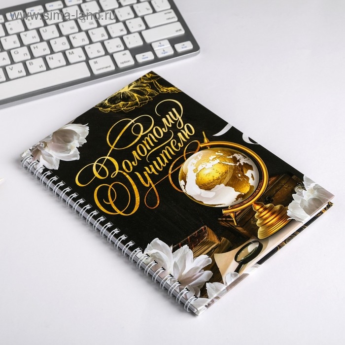 Ежедневник на гребне «Золотому учителю», формат А5, 60 листов, твердая обложка