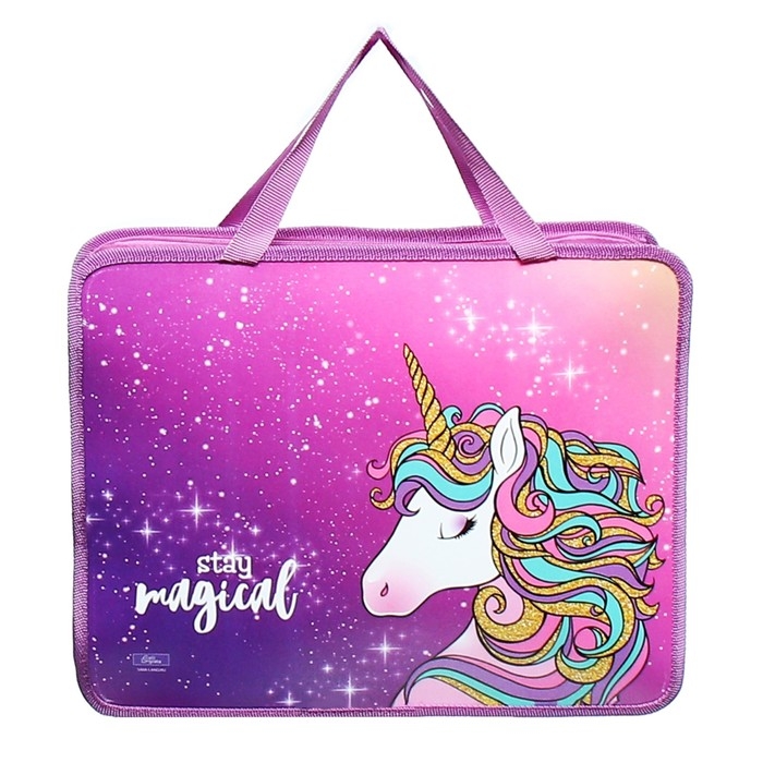 Папка с ручками А4, 330 х 260 х 75 мм, пластиковая, ручки-тесьма, Calligrata "Единорог!"