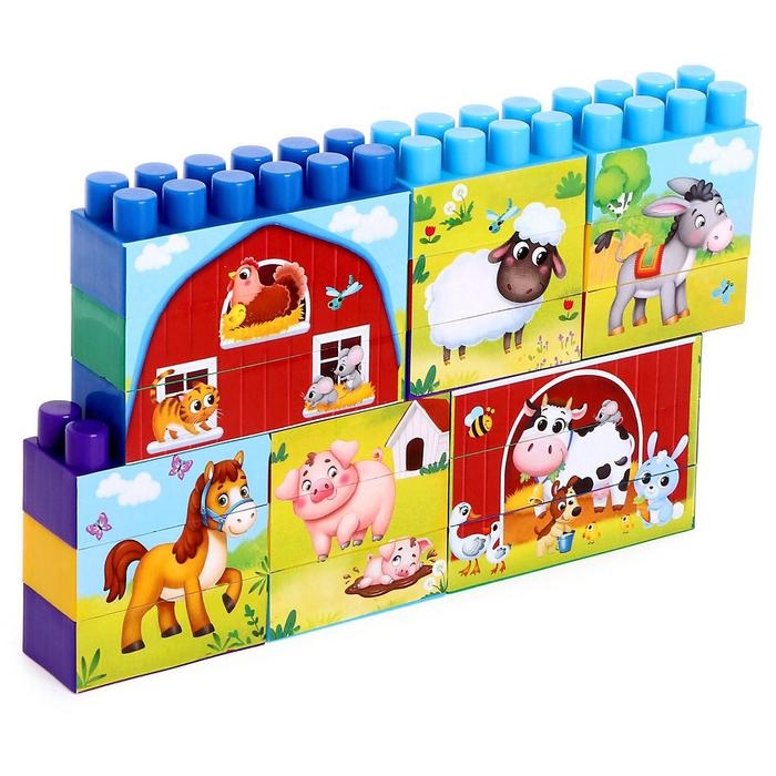 Красочный конструктор «Весёлая ферма» привлекает внимание и стимулирует познавательную активность малышей. Ребёнок в игровой форме познакомится с основными цветами, научится различать предметы по величине и считать их. Будет знать, как выглядят домашние животные и зверята с фермы, и правильно произносить их название.