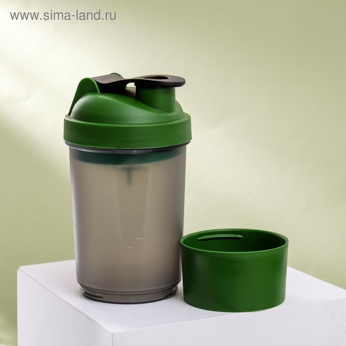 Шейкер спортивный с чашей под протеин, серо-зелёный, 500 мл
