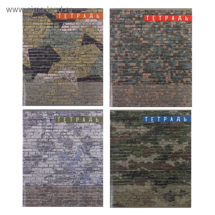 Тетрадь 96 листов в клетку "Милитари", обложка мелованный картон, блок офсет, МИКС