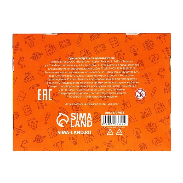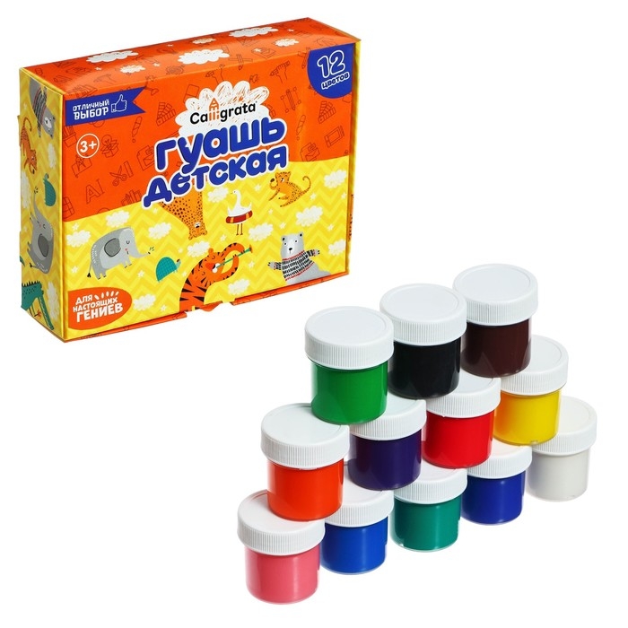 Гуашь для рисования Calligrata серии ""Отличный выбор"" предназначена для творческих занятий в школе и дома. Краска производится на основе качественного прозрачного связующего вещества, обеспечивающего чистоту цвета. Плотная, укрывистая текстура красок хорошо смешивается, равномерно наносится практически на любую основу. При высыхании дает бархатистый матовый эффект. Безопасны для детей, нетоксичны. В наборе 12 баночек разных цветов. Объём каждой баночки - 20 мл. Цветовая палитра гуаши Calligrata состоит из классических оттенков.