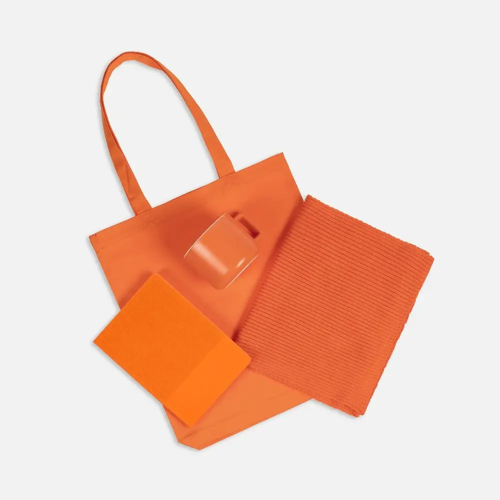 Кружка выверенной формы, сделает каждое чаепитие незабываемым. Уютный шарф с мягкой текстурой станет незаменимым аксессуаром в прохладную погоду, а ежедневник с фактурным тиснением на обложке сделает ведение записей особенным. Шопер в качестве упаковки набора делает его более современным и практичным.