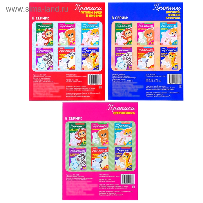 Прописи с наклейками «Тренируем руку», набор 3 шт. по 20 стр.