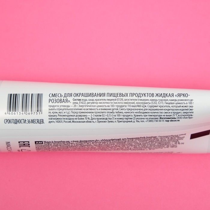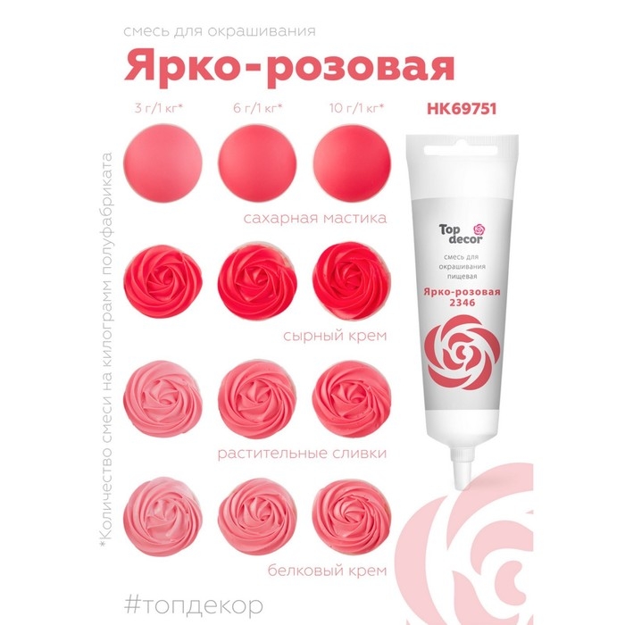 Пищевой краситель Top decor гелевый, «Ярко-розовый», 100 г