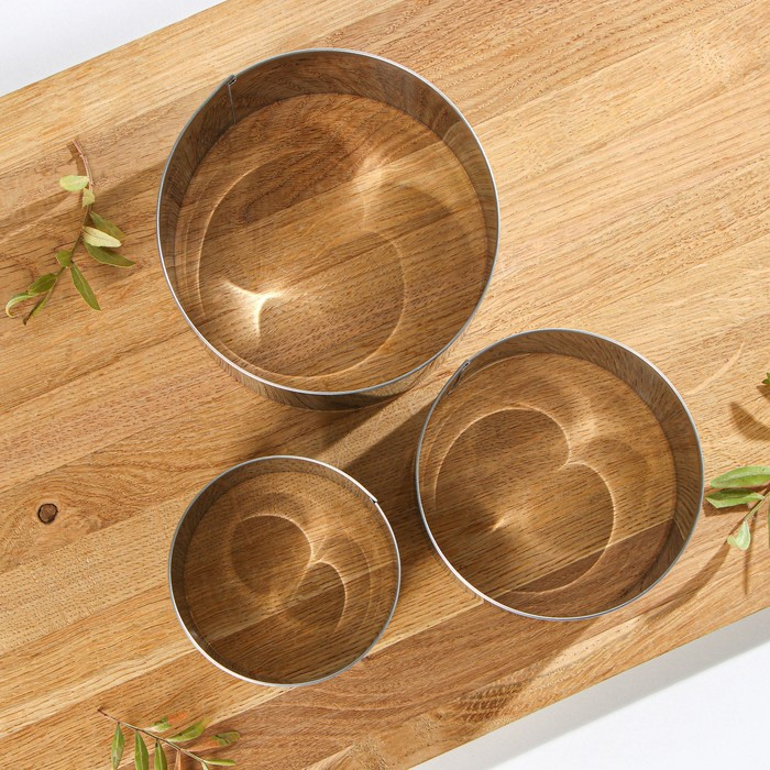Набор форм для выкладки и выпечки «Круг» KONFINETTA, 3 шт, d=8 см, d=10 см, d=12 см, цвет серебристый
