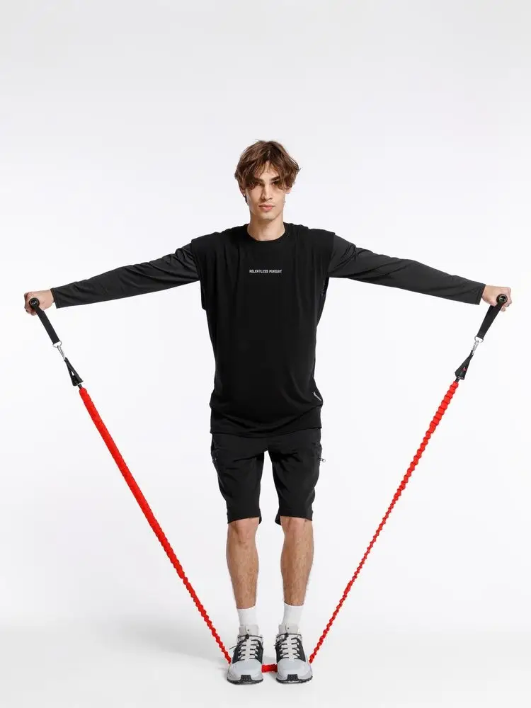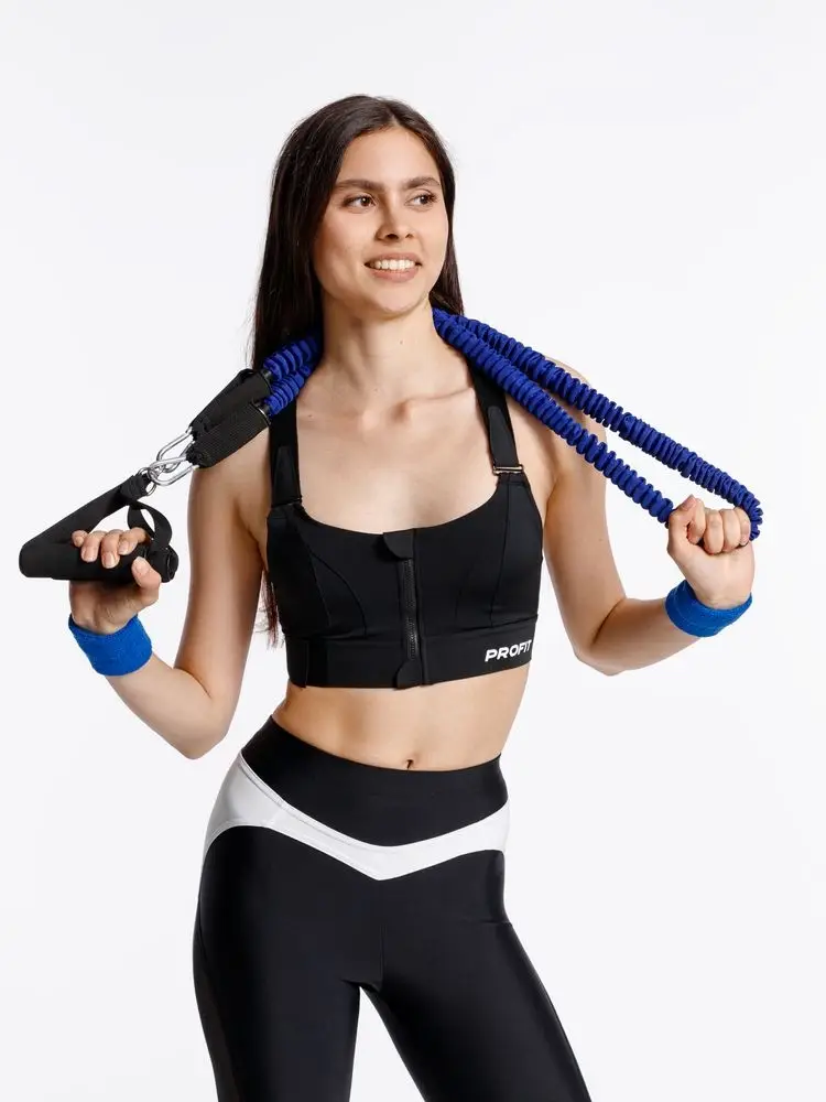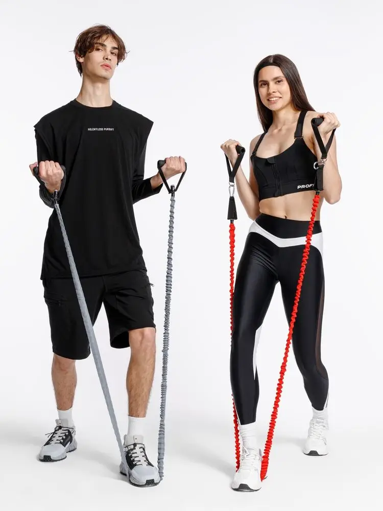 В набор входят 3 трубчатых эспандера с разной степенью нагрузки от 6,8 до 15,8 кг. Меняя и комбинируя их, можно усиливать или ослаблять нагрузку во время тренировки.