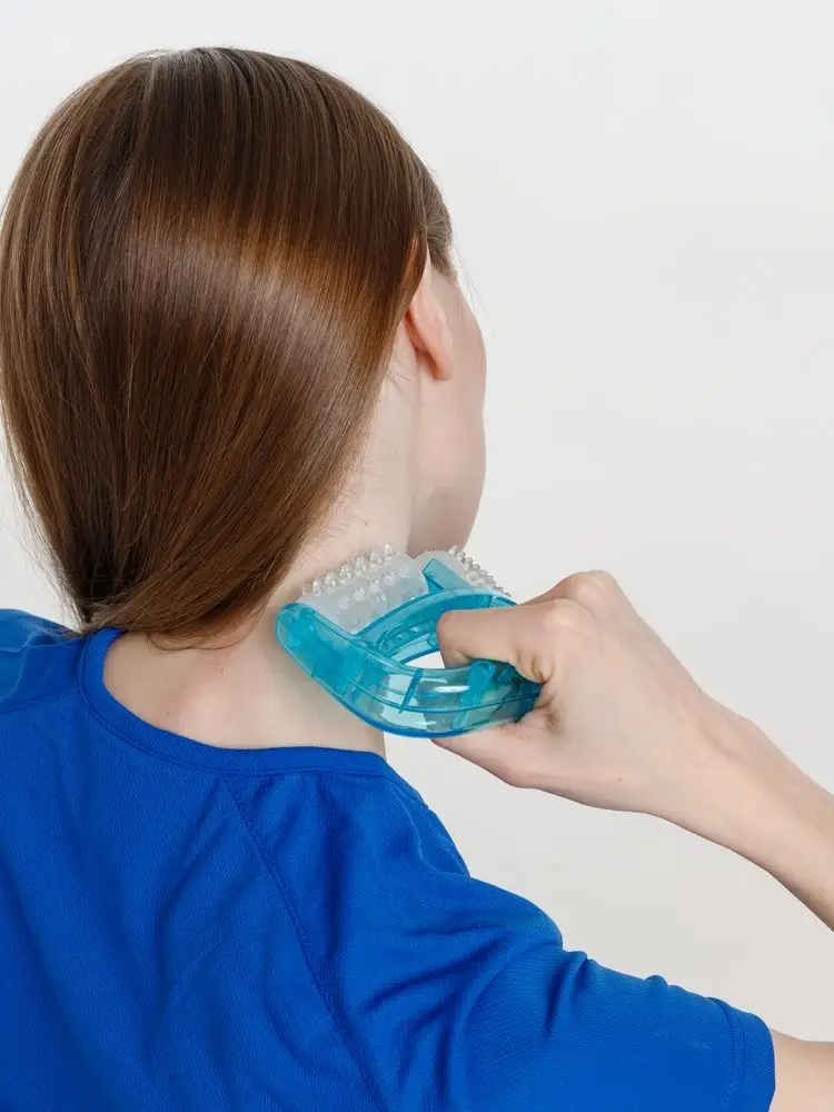 Эргономичная ручка выполнена из прочного пластика. Массажер комфортно лежит в ладони, для пальцев на ручке предусмотрены специальные углубления для удобного хвата.