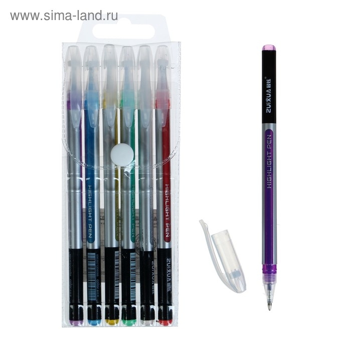 Набор гелевых ручек, 6 цветов, корпус цветной с белыми вставками, в блистере