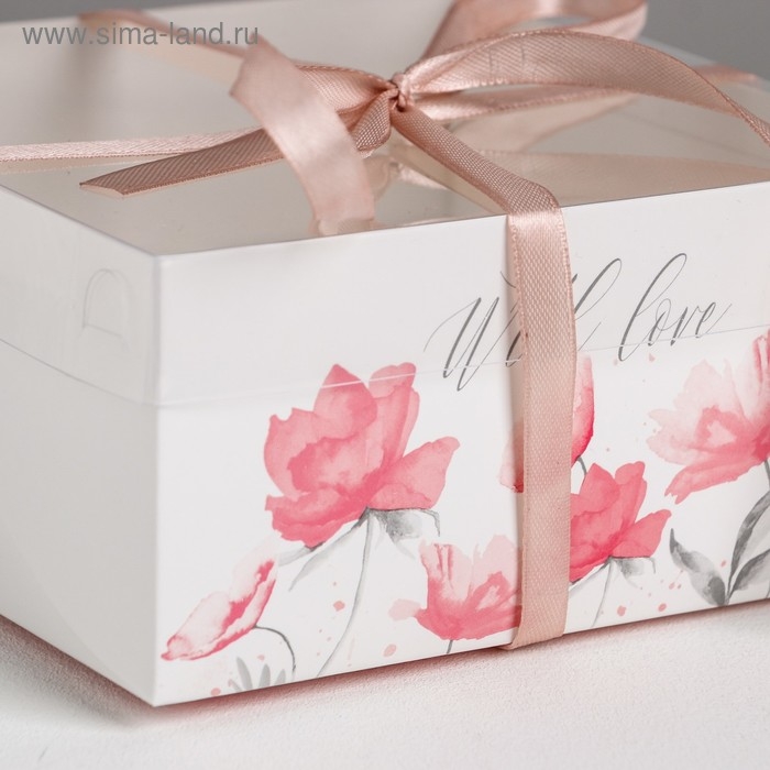 Коробка для капкейков, кондитерская упаковка, 4 ячейки «For You with love», 16 х 16 х 7.5 см