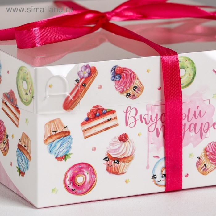 Коробка на 6 капкейков с окном, белая, 25 х 17 х 10 см