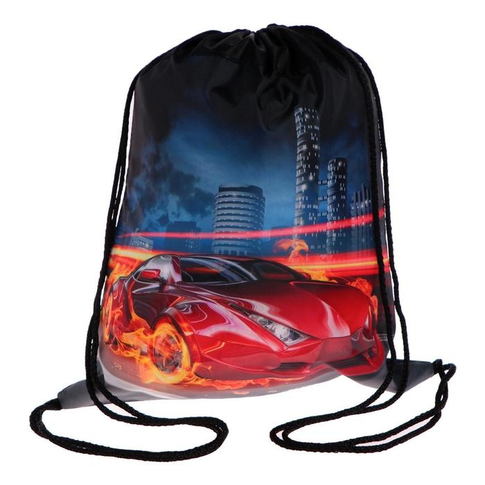 Мешок для обуви 420 х 340 мм, Calligrata МСО-5С, (мягкий полиэстер, плотность 210D), "Авто в огне"