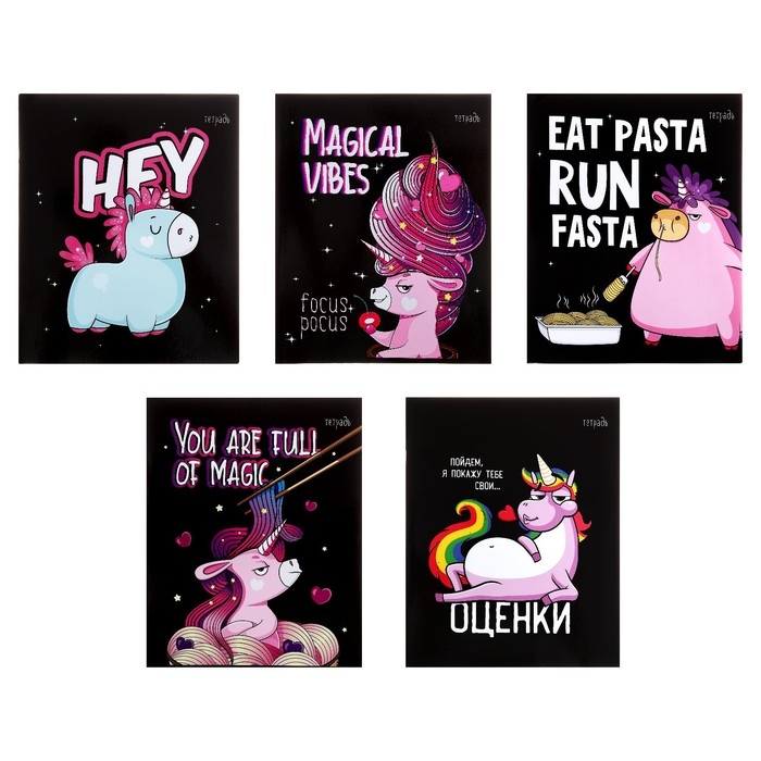 Тетрадь 48 листов в клетку Calligrata "Единорог", обложка мелованный картон, УФ-лак, блок офсет, МИКС