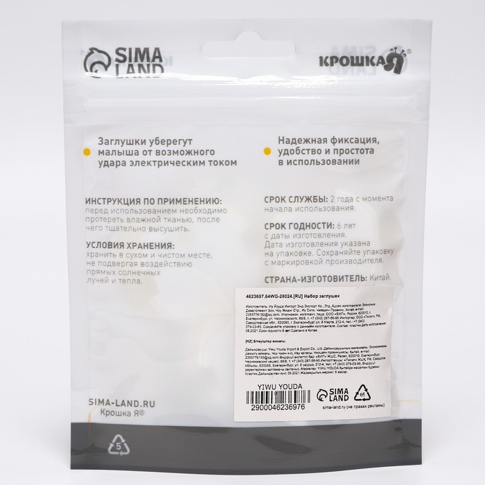 Заглушка для розетки, цвет белый, набор 10 шт., Крошка Я