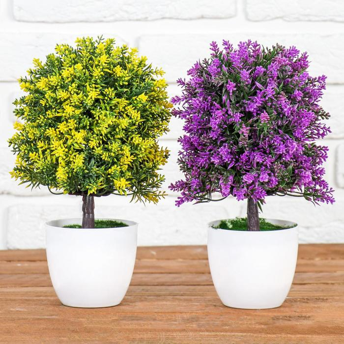 Бонсай в горшке "Пышное деревце с цветами" 12х25 см, микс
