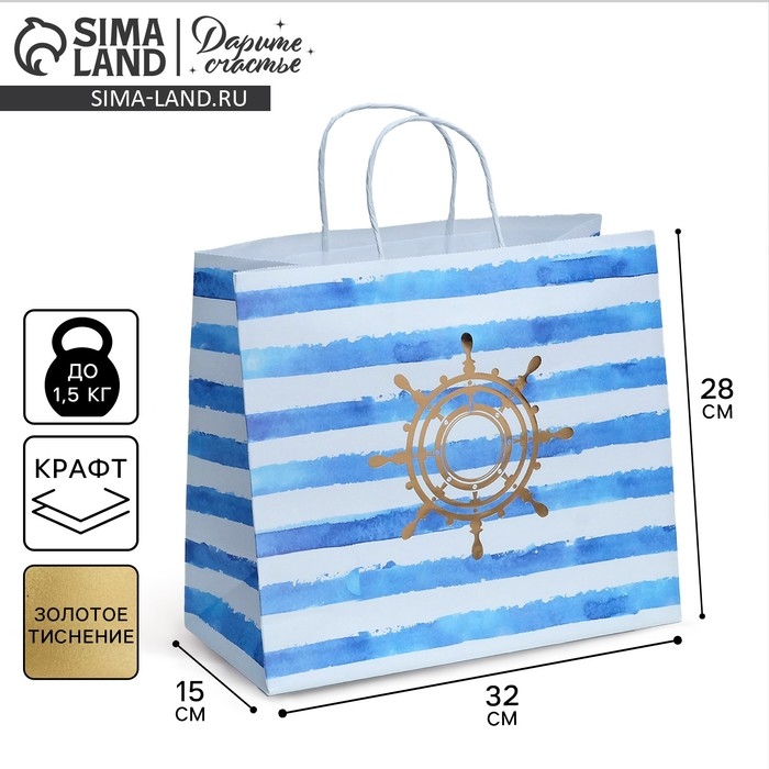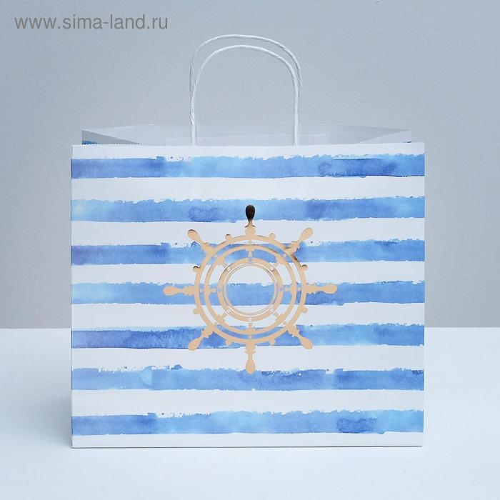 Пакет подарочный крафтовый, упаковка, «Якорь», 32 х 28 х 15 см