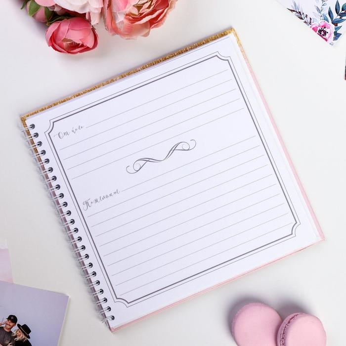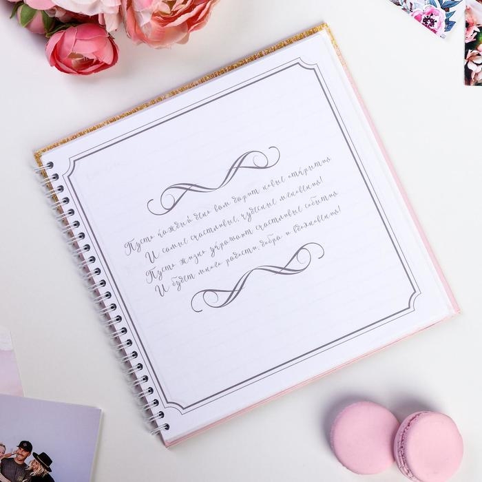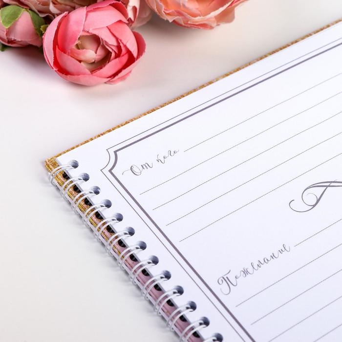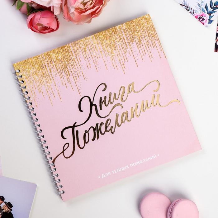Книга пожеланий «Розовая с блестками» на пружине, 21,7 х 21 см.