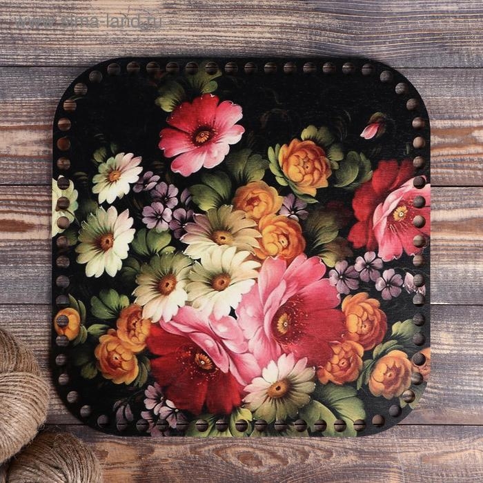 Заготовка для вязания "Квадрат скруглённый Жостовская роспись №1", донышко, размер 30 см