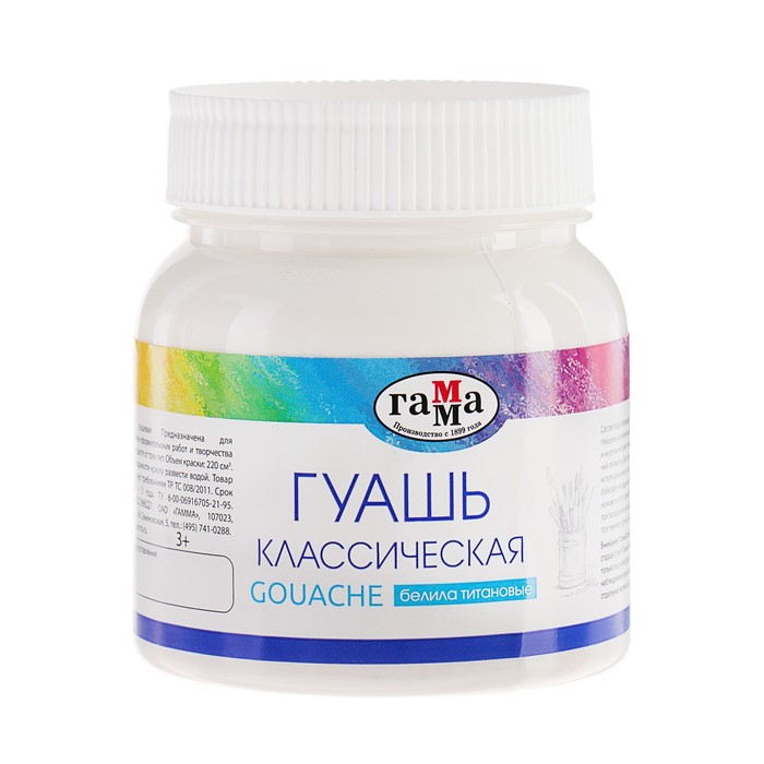 Гуашь "Гамма" "Классическая", 220 мл, белила титановые