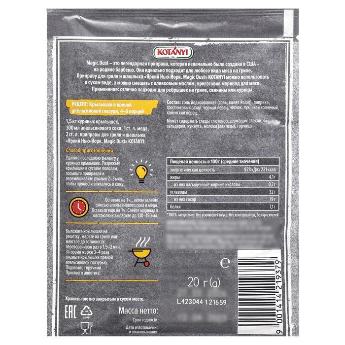 Приправа для гриля и шашлыка Kotanyi Яркий Нью-Йорк Magic Dust превратит обычное мясо, обжаренное на открытом огне или на гриле, в настоящий кулинарный шедевр! Magic Dust – это легендарная приправа, изобретенная в США специально для барбекю.