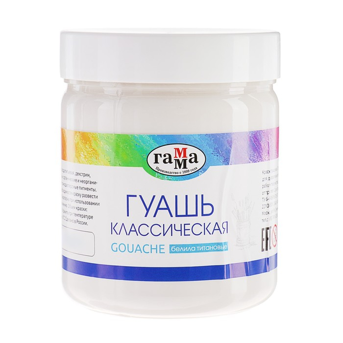 Штучная гуашь объемом 500 мл серии "Классическая" предназначена для творческих занятий в школе и дома.