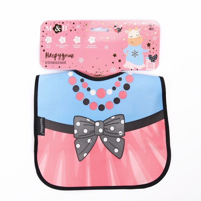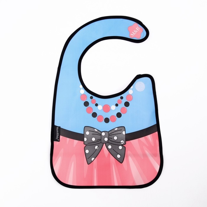 Нагрудник не промокает и качественно защищает, поэтому одежда малыша не испачкается в процессе кормления. У слюнявчика есть специальный кормашек, который выворачивается на лицевую сторону на время приема пищи, в него попадают все крошки: чистым останется не только сам ребёнок, но и место, где он кушает.