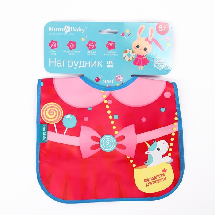 Нагрудник для кормления «Candy Bar» непромокаемый на липучке, с карманом