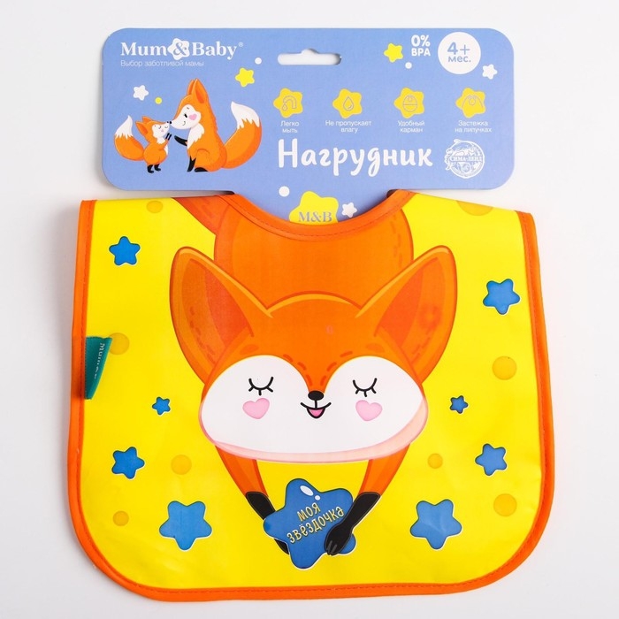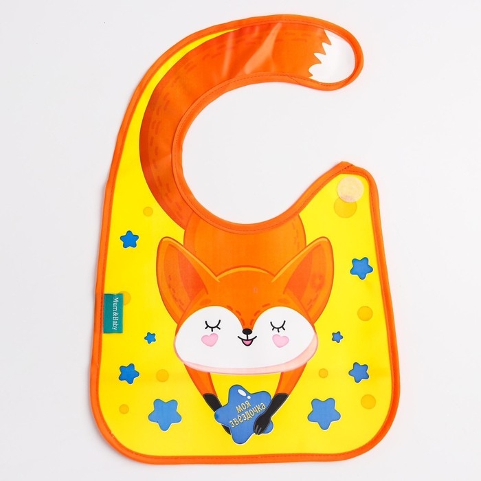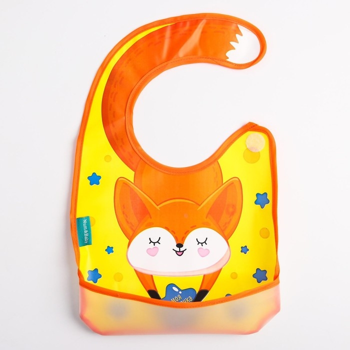 Нагрудник для кормления «Лисенок» непромокаемый на липучке, с карманом