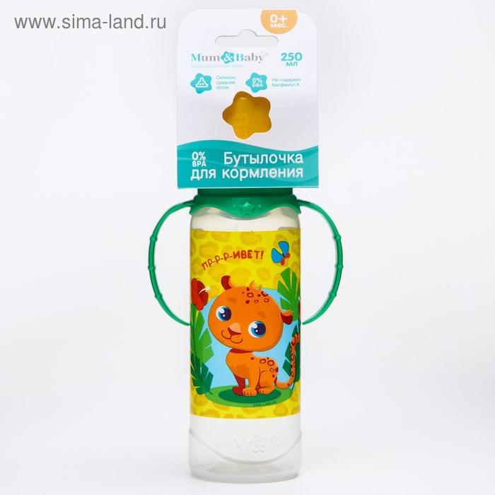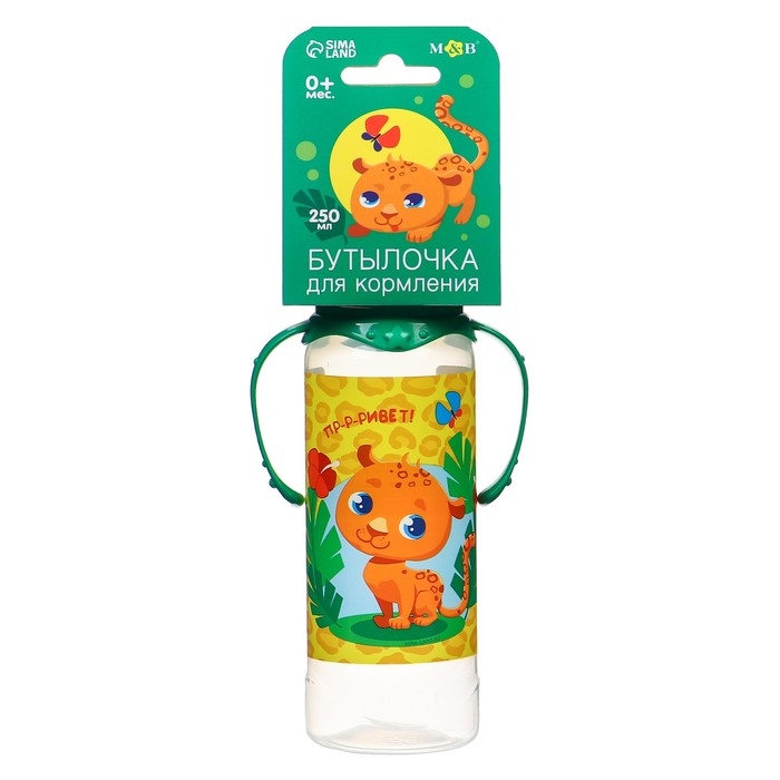Бутылочка для кормления «ТРЕНД. Леопард», классическое горло, 250 мл., от 3 мес., цилиндр, с ручками