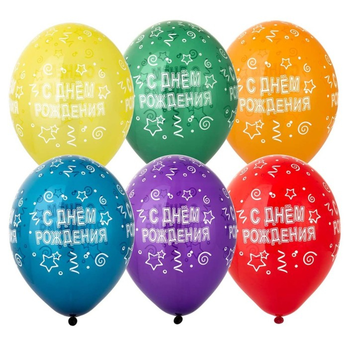 Шар латексный 14" «С днём рождения», серпантин, кристалл, шелкография, набор 25 шт., МИКС