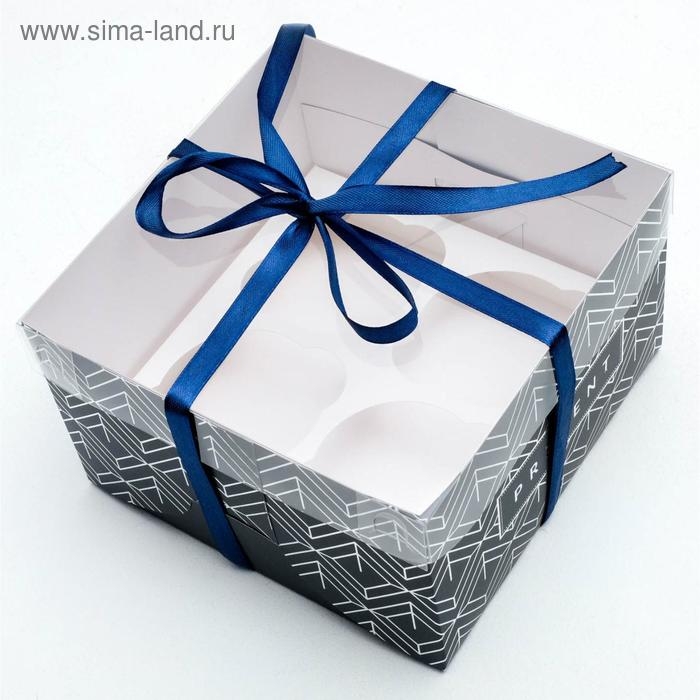 Коробка для капкейков, кондитерская упаковка, 4 ячейки, Present, 16 х 16 х 10 см