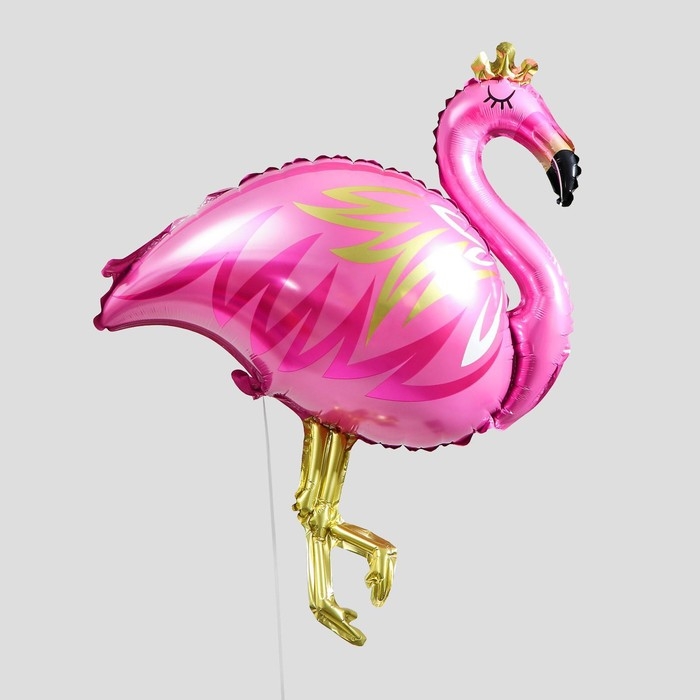 Шар фольгированный 32" «Фламинго с короной», фигура, цвет розовый
