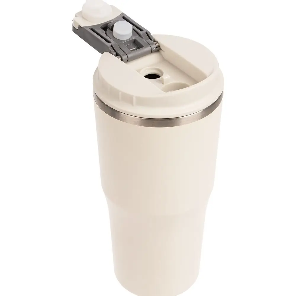 - 2 крышки в комплекте: одна на 100% герметичная с механизмом блокировки отверстия для питья, вторая — с отверстием для трубочки