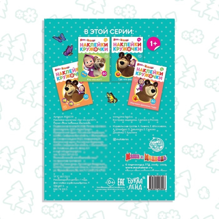 Наклейки-кружочки «Где что растёт?», 16 стр., А5, Маша и Медведь