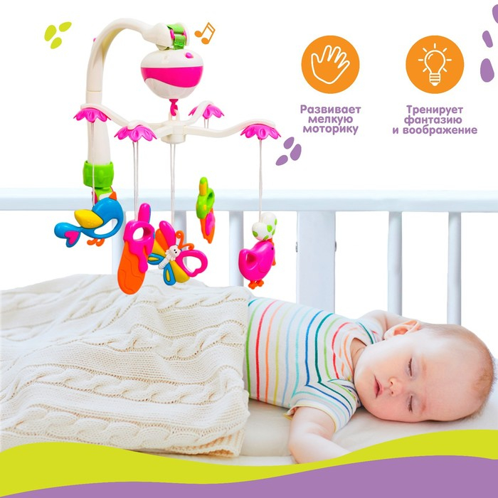 Мобиль музыкальный на кроватку «Полянка», на батарейках, Крошка Я
