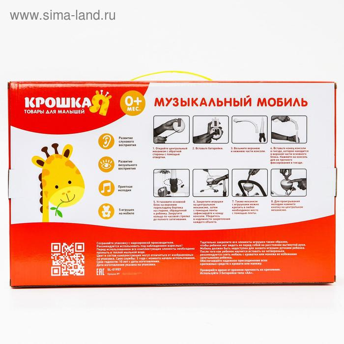 Мобиль музыкальный на кроватку «Зоопарк», на батарейках, Крошка Я