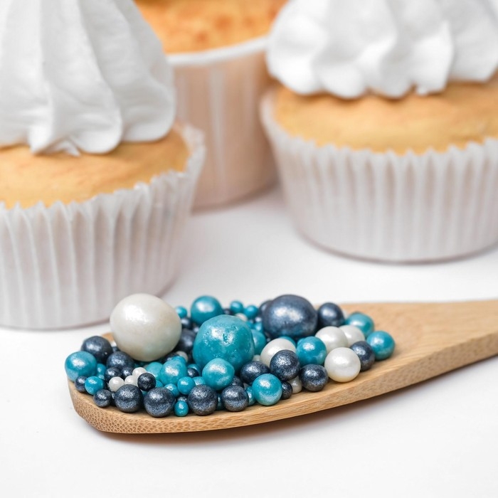 Посыпка кондитерская "Жемчуг", взорванные зерна риса, бирюза, серебро, черный, 50 г