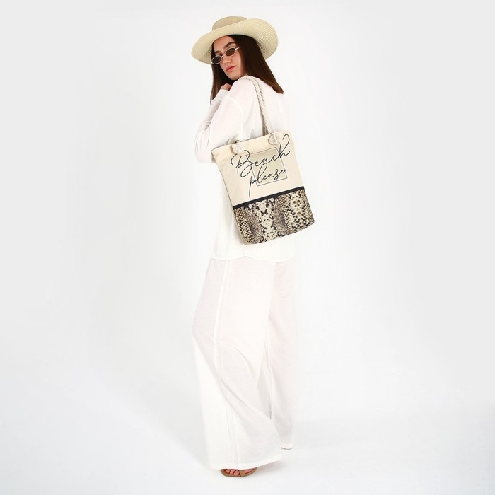 Сумка женская пляжная на молнии, цвет белый