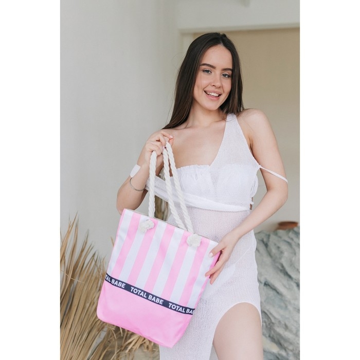 Сумка женская пляжная на молнии, цвет розовый