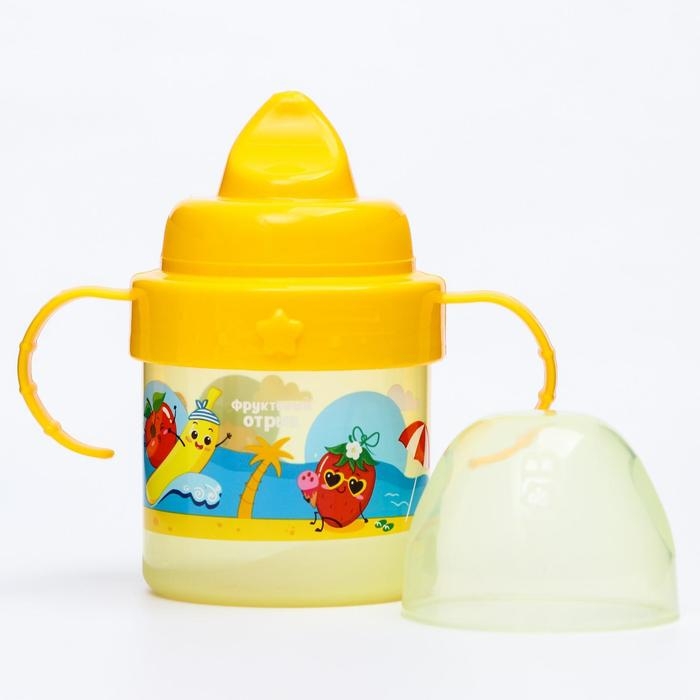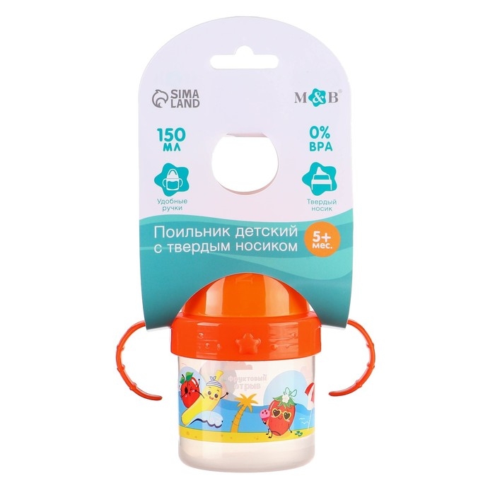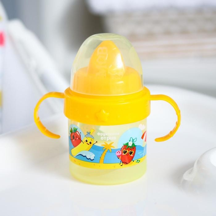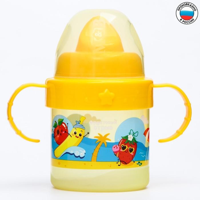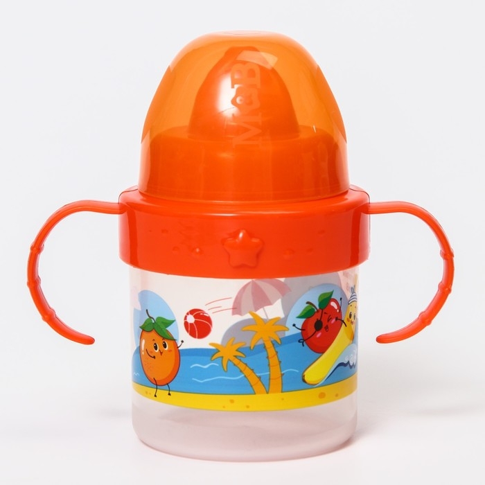 Поильник детский с твёрдым носиком «Фруктовая тусовка», 150 мл., с ручками, цвет оранжевый