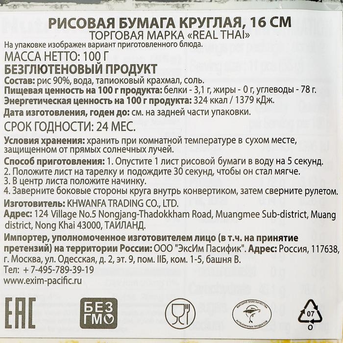 Бумага рисовая REAL THAI, 16 см, 100 г